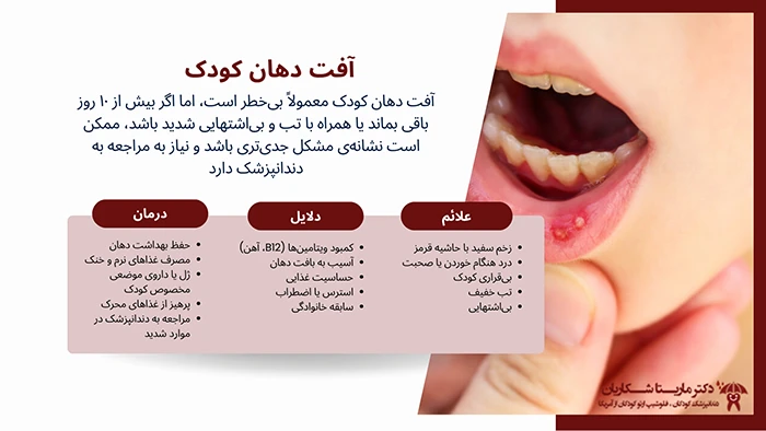 روشهای درمان آفت دهان کودک را بخوانید.